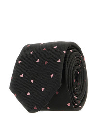 heart-motif pointed tie Highlights - Black - Heart pattern - Woven texture - Pointed tip - All-over print Made in United Kingdom Composition Silk 100%