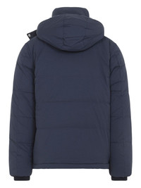 hooded quilted jacket Highlights - Navy blue - Quilted design - Zip front fastening - Snap button fastening - Detachable hood - Welt pockets - High neck Imported Composition Polyamide 100% Washing instructions Read Manufacturer Guidelines