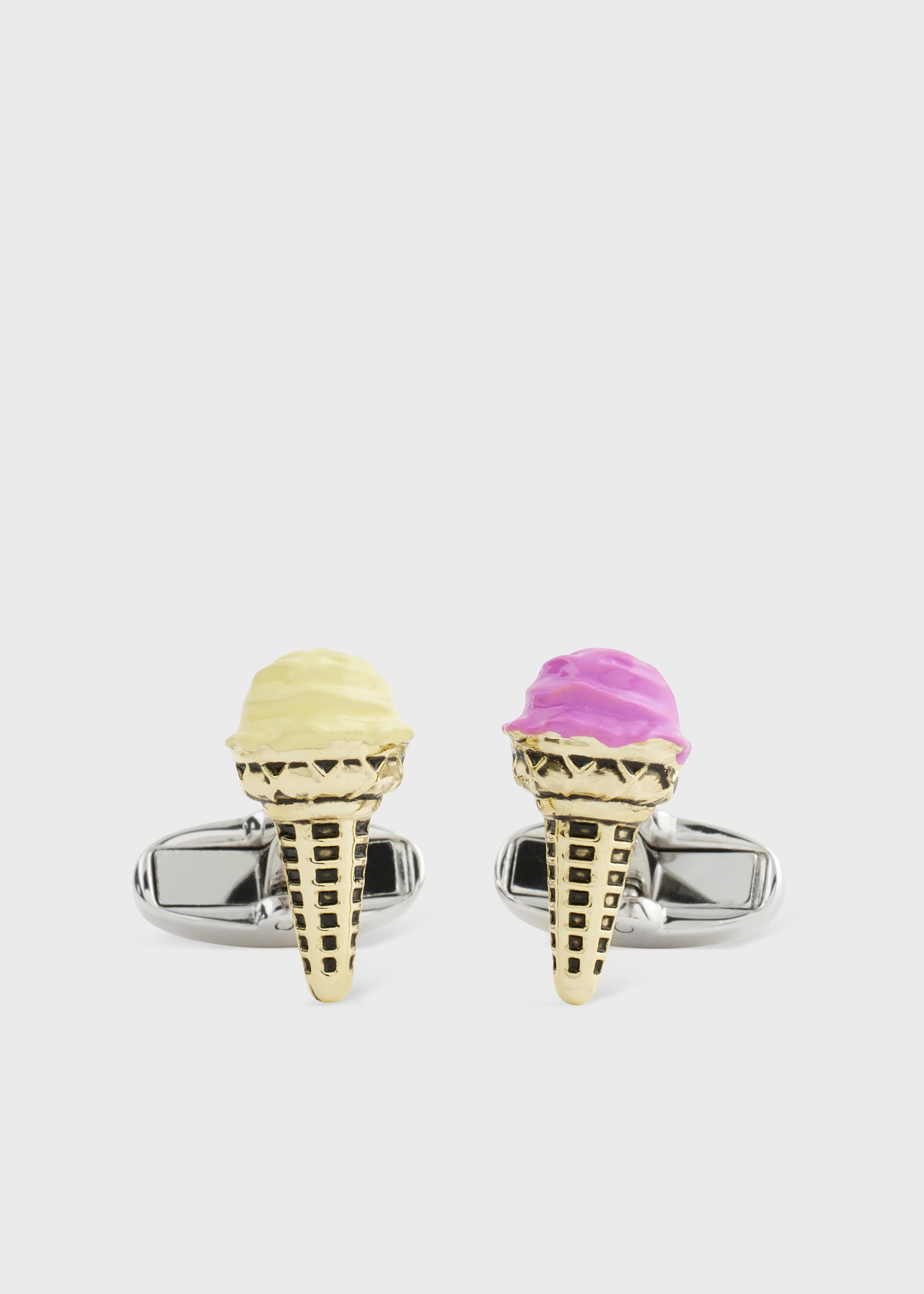 Add a playful touch to your outfit with these silver 'Ice Cream' cufflinks. Featuring polished silver T-bar fastenings and presented in a black gift-box, these cufflinks are the perfect gift for dog lovers. 70% Copper, 30% Zinc with 100% Enamel plated Product Code: M1A-CUFF-TCONE-83