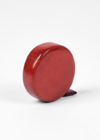 Return tape measure covered in coral red vegetable tanned leather, made by Il Bussetto for Paul Smith. * Return tape measure covered with vegetable tanned leather * Hand painted with natural colors * Measure in cm and inches * Finished with a small debossed dual branded logo on the exterior * Measurements: 5 x 1.5 cm * Length of the tape: 150 cm - 60 inch * 80% Plastic, 20% Leather [b]Il Bussetto was founded in 2004 by Mauro Gobbi in Milan.[/b] He was attracted by the unique and special traditional Italian leather craft technique that allows the production of small leather goods moulded onto wood and devoid of seams. Product Code: GRB-ILBU-AFTAPM-24