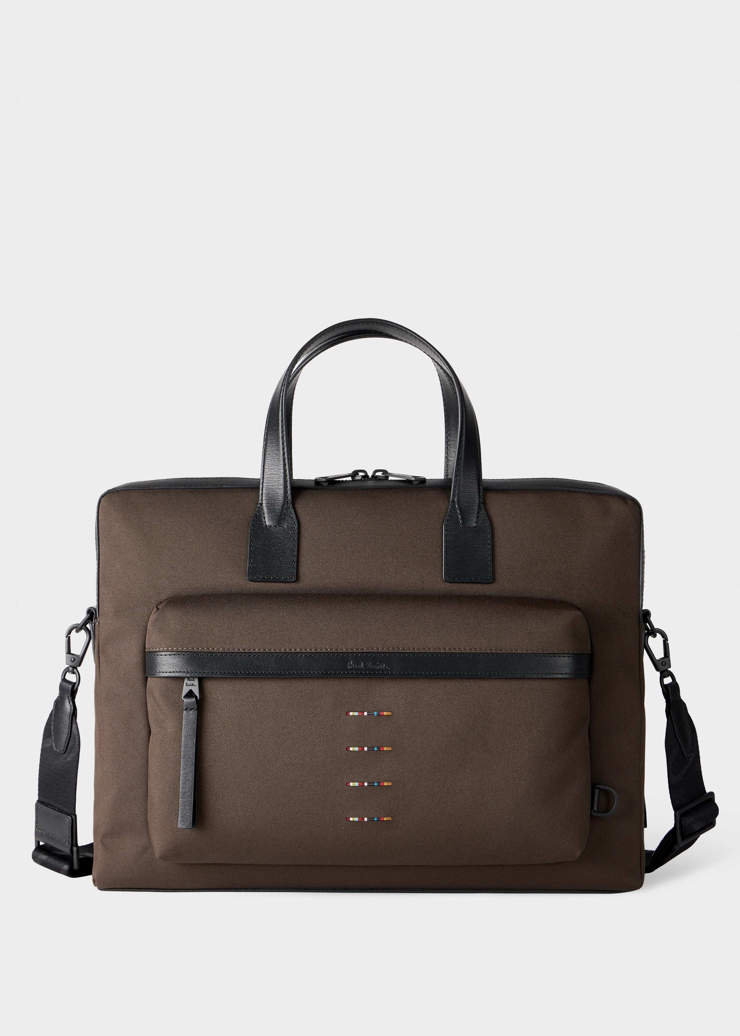 Crafted from a durable Cordura® construction for added sturdiness, this khaki folio features laser-cutout detailing with 'Signature Stripe' inserts. Additionally, the bag has black leather trims for a distinctive touch, including detachable shoulder straps. The streamlined silhouette is perfect for organising documents and essentials, featuring a dual-zip closure for added security. The folio features a large front pocket and is complete with an internal padded sleeve for added organisation. Product Code: M1A-8257-UBUSIN-68