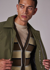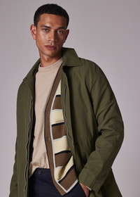Crafted from a rich blend of cotton and nylon, this khaki mac features a contrast floral polyester lining. Complete with a concealed zip fastening. Features include a single rear vent, angled welt pockets, and a press stud to the neck. The perfect transitional piece, this lightweight jacket can be paired with knitwear or a smart shirt. Machine washable The Fit - Regular-fit is relaxed through the body Product Code: M2R-018Z-T22090-36