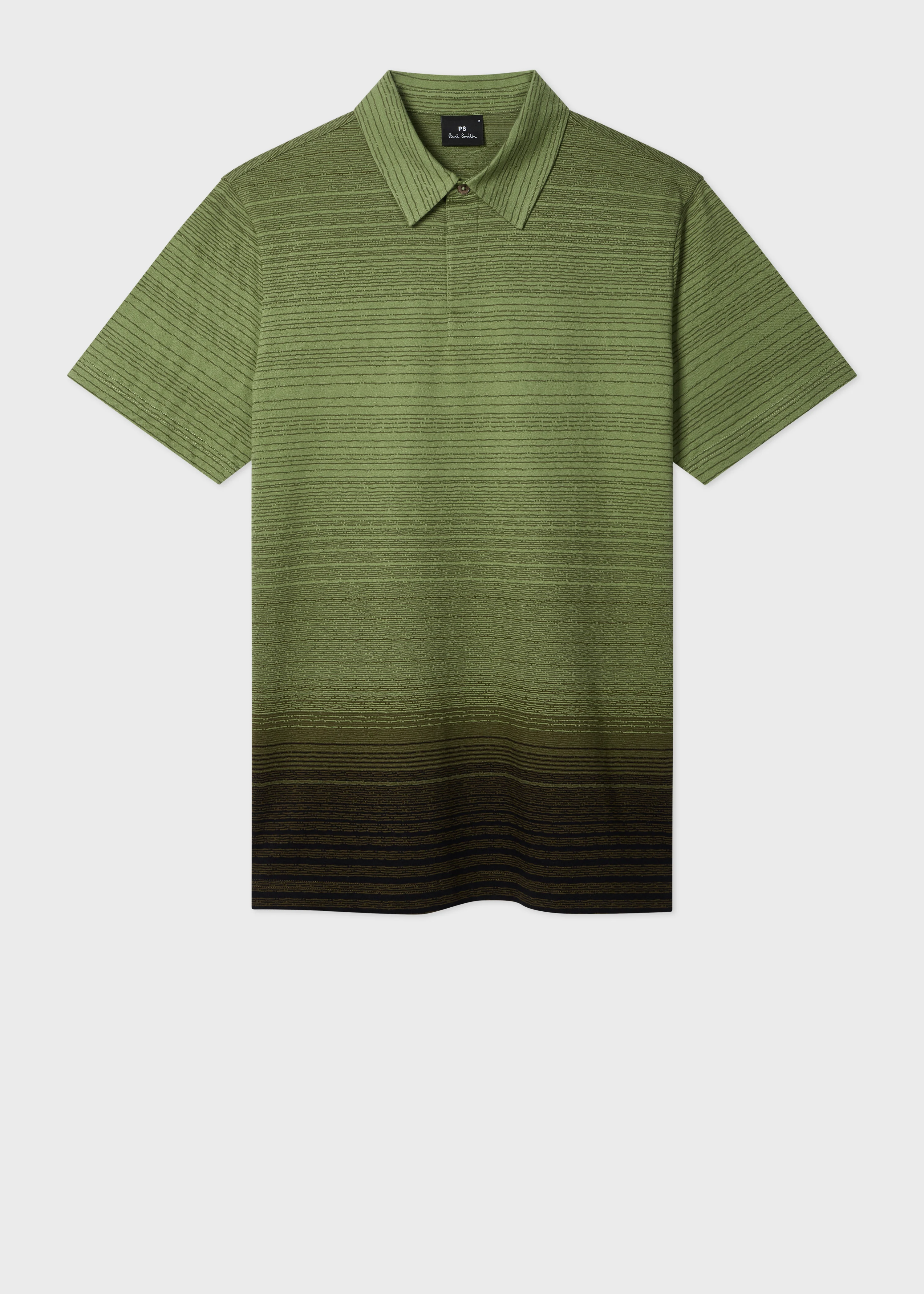 Made from 100% organically grown cotton, this khaki polo shirt features a gradient stripe pattern throughout. Complete with a concealed placket for a clean finish and a PS Paul Smith tab label on the side seam. Product Code: M2R-222Z-V22562-31