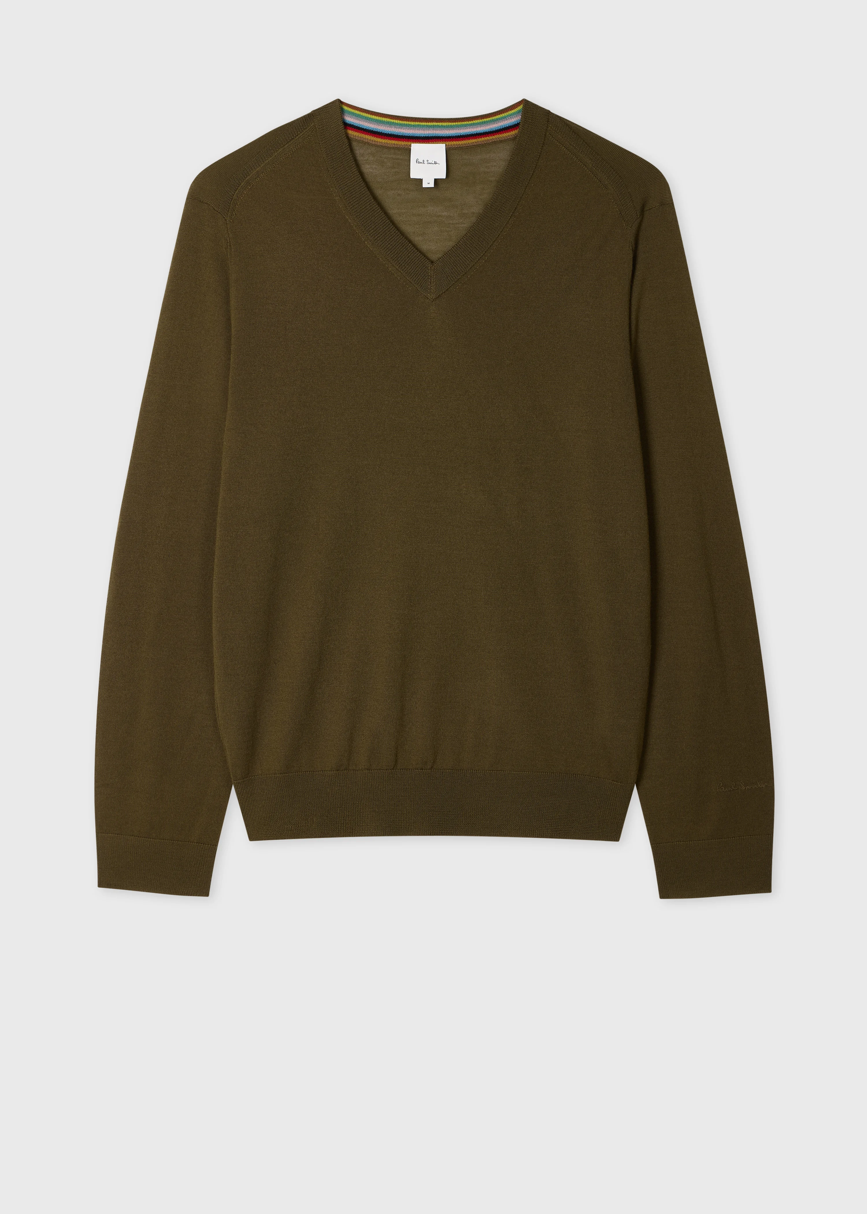 Made from 100% Merino wool for a soft and breathable finish, this khaki green sweater features a classic V-neck design. Complete with our signature logo embroidered on the cuff and 'Signature Stripe' internal collar trim. The Fit - Classic-Fit Product Code: M1R-242Z-R02093-68