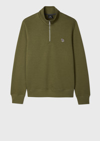 Cut from organic loopback cotton for everyday comfort, this khaki green sweatshirt features a funnel neck with a half zip fastening. Finished with our classic Zebra logo stitched on the chest. Product Code: M2R-168TZ-V21116-36E