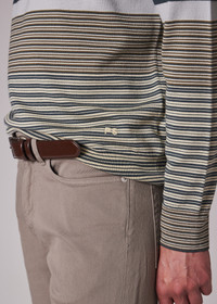 Made from soft and breathable 100% merino wool, this long-sleeve knitted polo features a khaki mixed-stripe pattern. Complete with contrasting knit stripes for a tactile finish, this polo comes complete with a two-button placket. 100% Merino Wool Hand wash or dry clean only The Fit Regular-Fit is relaxed through the body. Product Code: M2R-473Z-T22439-37A