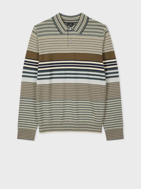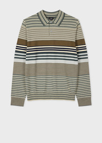 Khaki Merino Wool Stripe Long-Sleeve Polo Shirt
