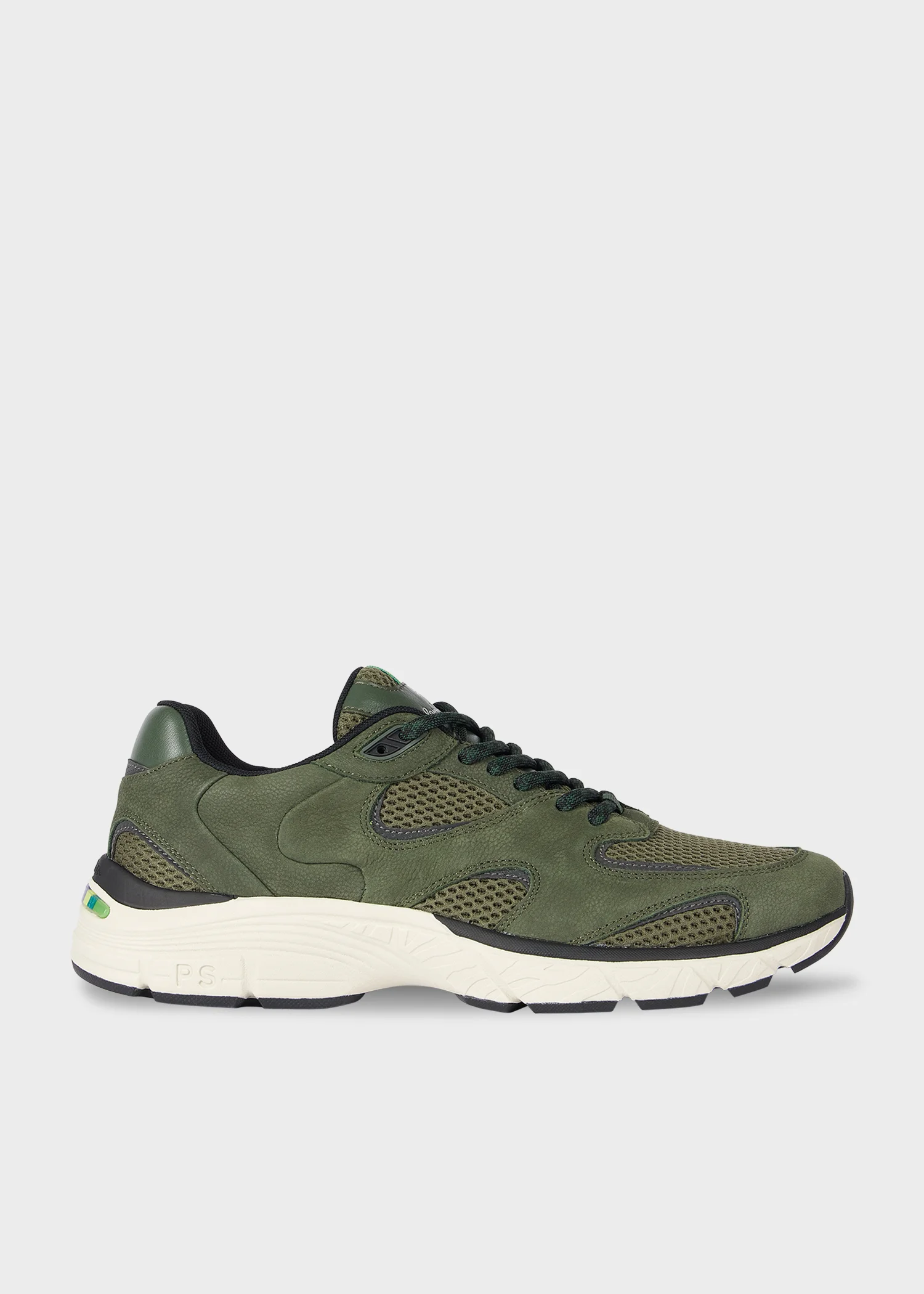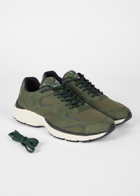 Made from a mix of grained nubuck and mesh for a lightweight, breathable upper - these khaki 'Shane' trainers feature a 'Sports Stripe' panel at the heel. Complete with a white midsole for contrast and two-tone green laces. Product Code: M2S-SNE04-TNUB-63
