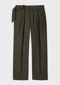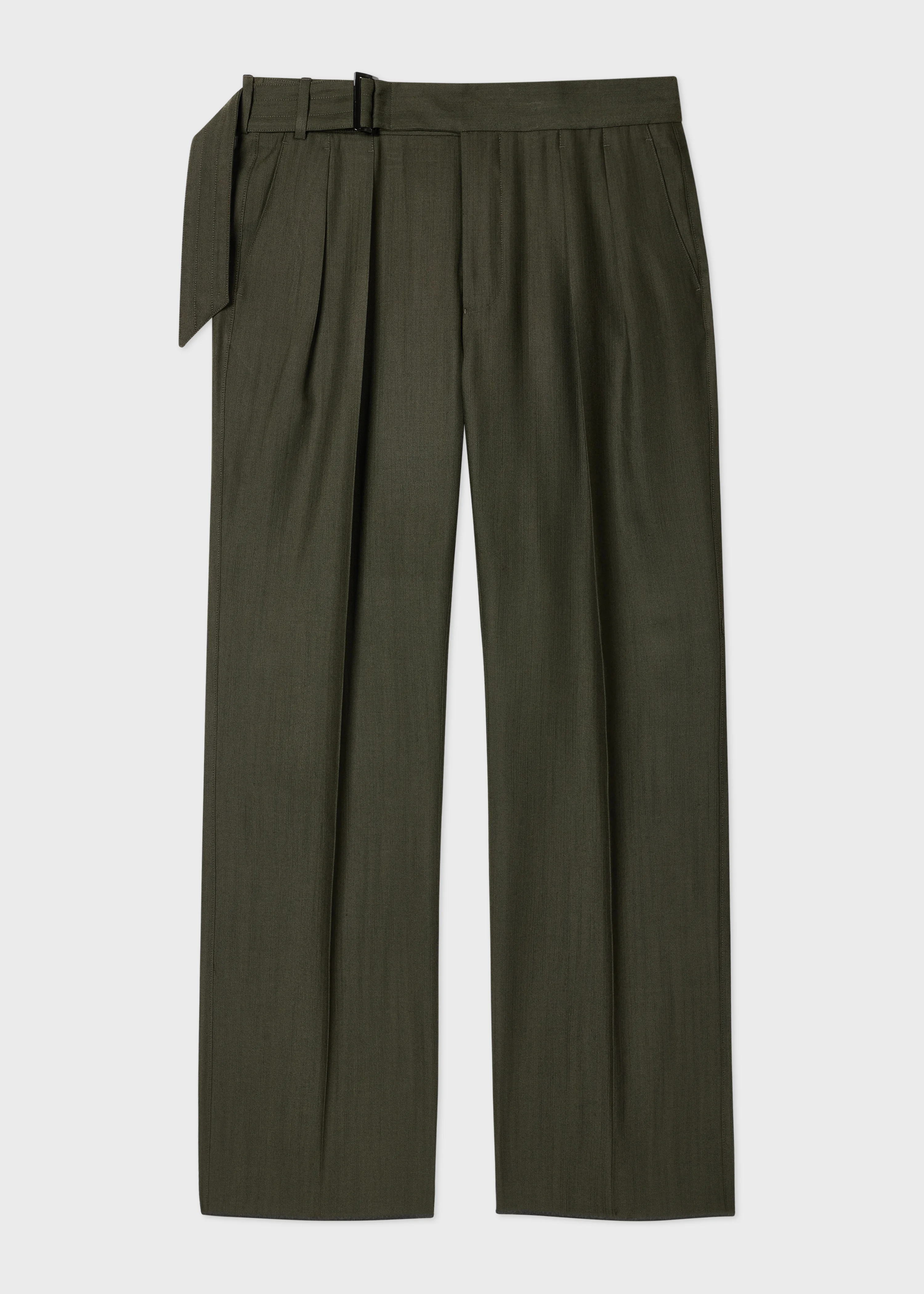 Made in Portugal from a wool and lyocell-blend cloth, these khaki trousers feature a textured finish. Cut for a wide leg shape, these trousers are finished with a double pleat front and belted waist. The Fit - Higher rise, deeper waistband - Wider from knee to hem - Fullness through hip and thigh Product Code: M1R-692Z-T02791-35