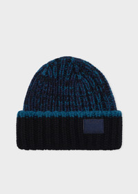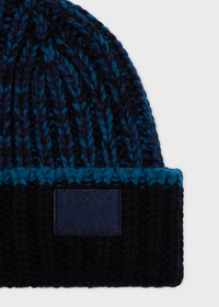 Made in Great Britain from a soft lambswool, this hat features a chunky rib knit texture throughout, in shades of blue and black. This hat is complete with a signature Paul Smith logo label. Product Code: M1A-383MK-T715-37