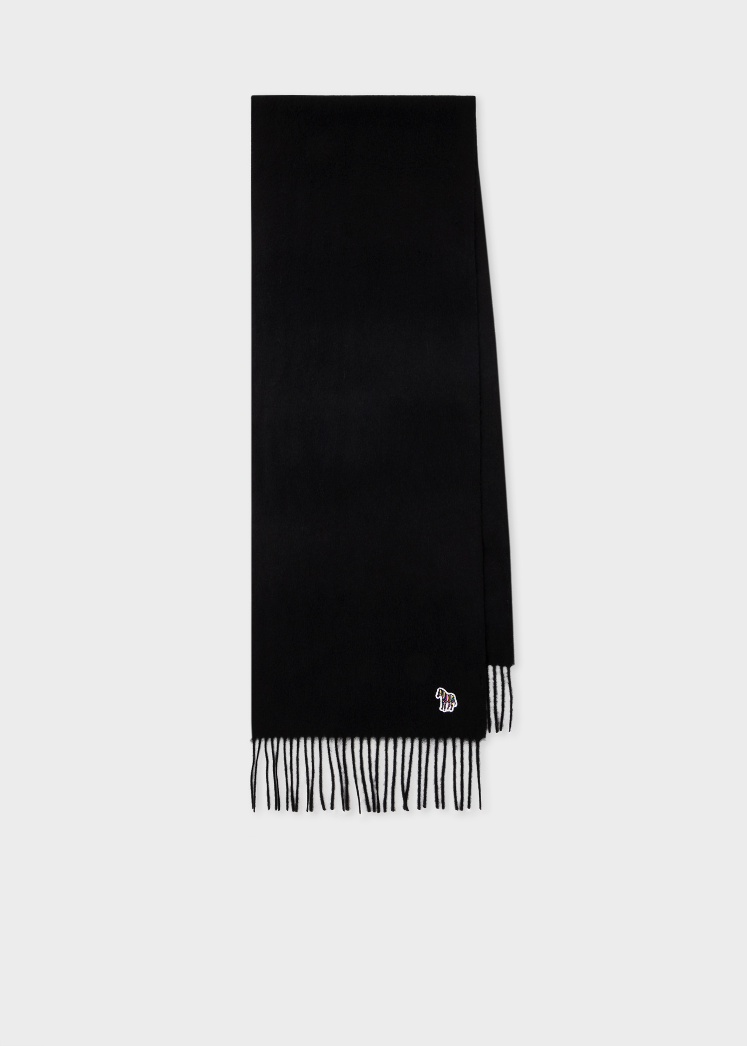 Made from a soft lambswool, this black scarf features an embroidered Zebra logo. An ideal accessory to add a pop of colour to your look, this cosy scarf is finished with long frayed edges. Size: 180 x 30 cm 100% Lambswool Dry clean only Product Code: M2A-150K-JZEBRA-79