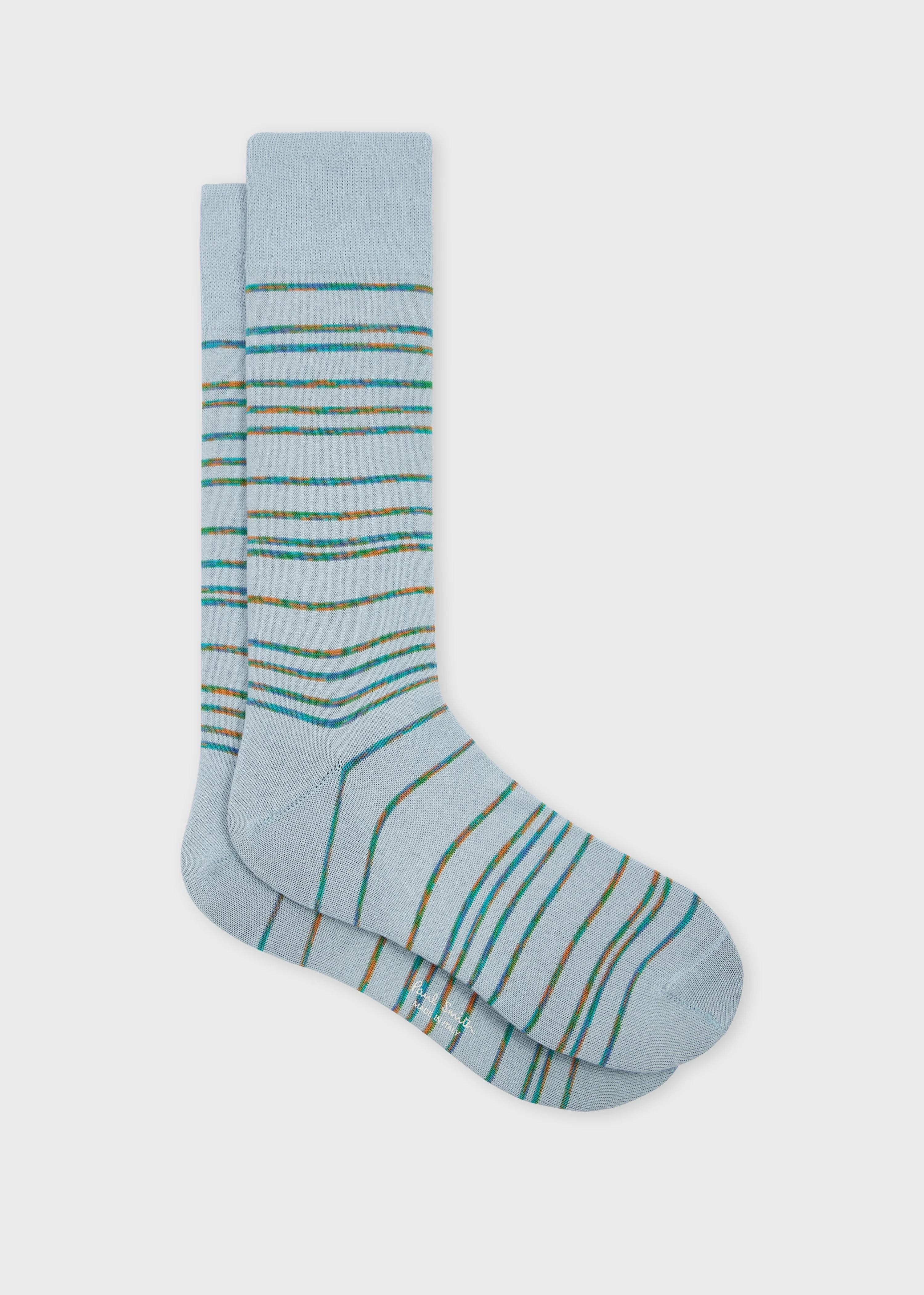 Made from a soft cotton-blend, these light blue socks feature a 'Pinstripe Signature' pattern throughout. With subtle colouring, these socks are ideal for everyday styling. Product Code: M1A-800MO-T582-42