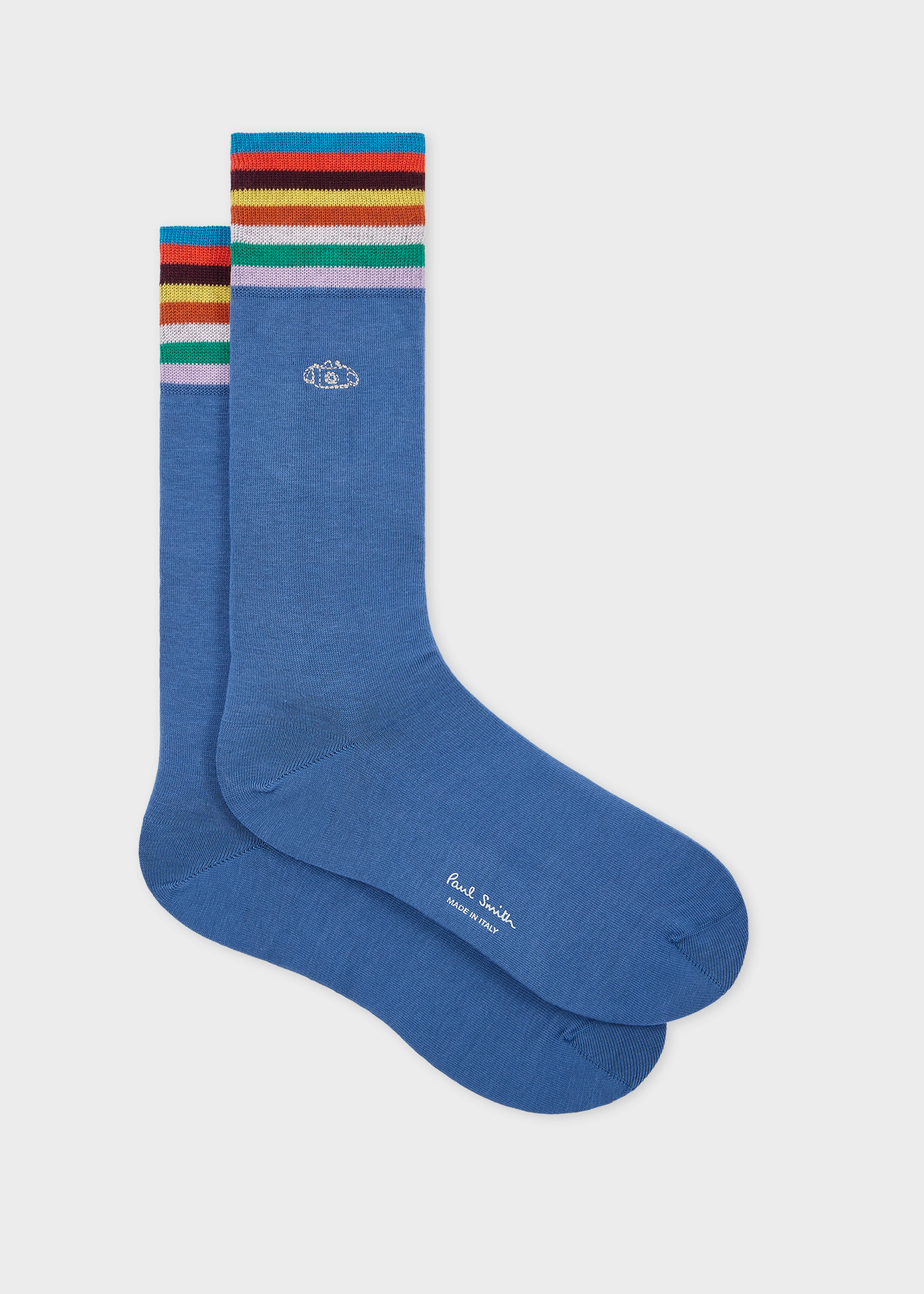 Made in Italy from a soft cotton-blend, these light blue socks feature a small camera embroidery for a playful touch. Finished with ribbed cuffs for comfort, they’re an easy way to add character to everyday looks. Product Code: M1A-380CI-T702-42