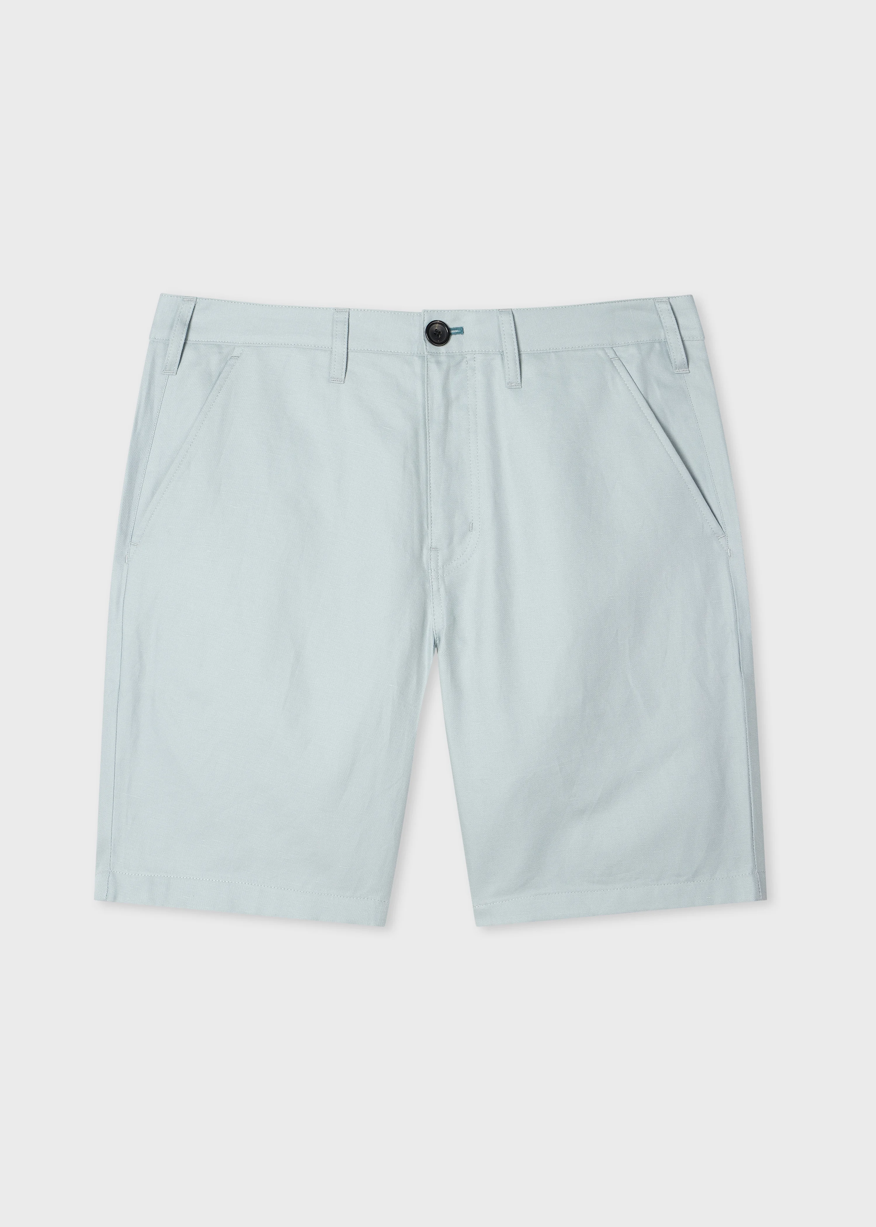 Made from a cotton and linen blend these chino shorts come in a light blue piece-dyed finish. Perfect for long summer days, the shorts are finished with a woven PS Paul Smith label above the rear pocket. Finished with a zip fly and button waist. The Fit -Standard-fi Product Code: M2R-035R-V22341-41