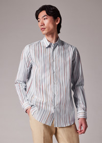 Made in Italy from premium 100% cotton, this light blue long-sleeve shirt features our 'Signature Pinstripe' pattern throughout. Cut for a regular-fit, this shirt is finished with a point collar and contrast cuff lining - for an added twist. The Fit - Regular-Fit is relaxed through the body. Product Code: M1R-901U-T02733-40