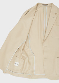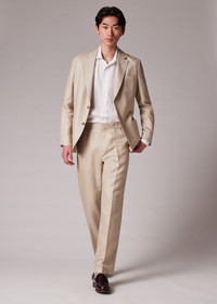 Made in Portugal from a premium wool, silk and linen-blend cloth, this light camel blazer features an unstructured, unlined design. An ideal option for the warmer weather, this blazer is finished with a two-button closure. The Fit - Classic-Fit also known as Casual-Fit is unstructured with a relaxed shoulder and slightly longer in the body. Product Code: M1R-2321-T02632-60