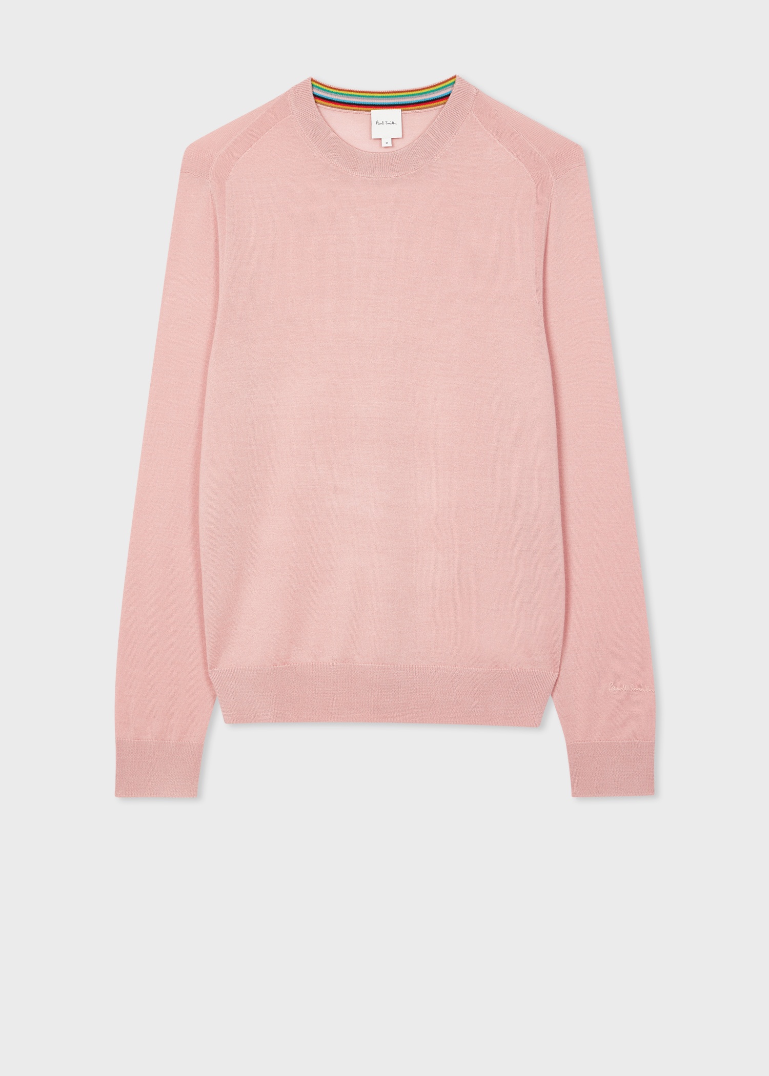 Made from 100% Merino wool for a soft, lightweight and breathable finish, this light pink sweater features a crew neck with 'Signature Stripe' interior for an added flash of colour. Complete with ribbed shoulder detailing and a tonal signature logo embroidered above the cuff. 100% Merino Wool Hand wash or dry clean only The Fit Regular-Fit is relaxed through the body. Product Code: M1R-562X-M02093-21