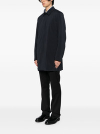lightweight coat Highlights - Navy blue - Front button fastening - Two side welt pockets - Straight hem Imported Composition Lining: Polyester 100% Outer: Recycled Nylon 69%, Polyester 27%, Elastane 4% SIZE & FIT Model measurements Height 6 ft 2 in(1.88 m) Bust/Chest 34.25 in(87 cm) Hips 34.64 in(88 cm) Waist 26.77 in(68 cm) FittingInformation Designed to be unstructured, offering a loose fit throughout The vented hem offers movement at the rear Made from a midweight stretch fabric, this piece offers elasticity and flexibility when worn