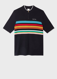 Navy 'Signature Stripe' Merino Wool Knitted Cycle Jersey