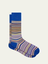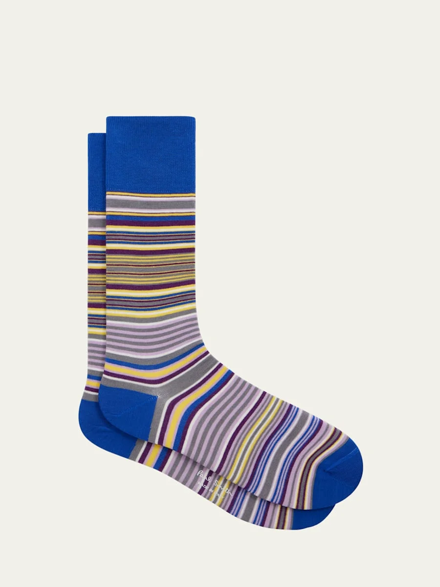 Paul Smith crew socks defined by a "Kahn" signature stripe design for a distincitve touch Ribbed cuffs to prevent slipping Reinforced toe and heel Cotton/nylon/elastane Made in Italy
