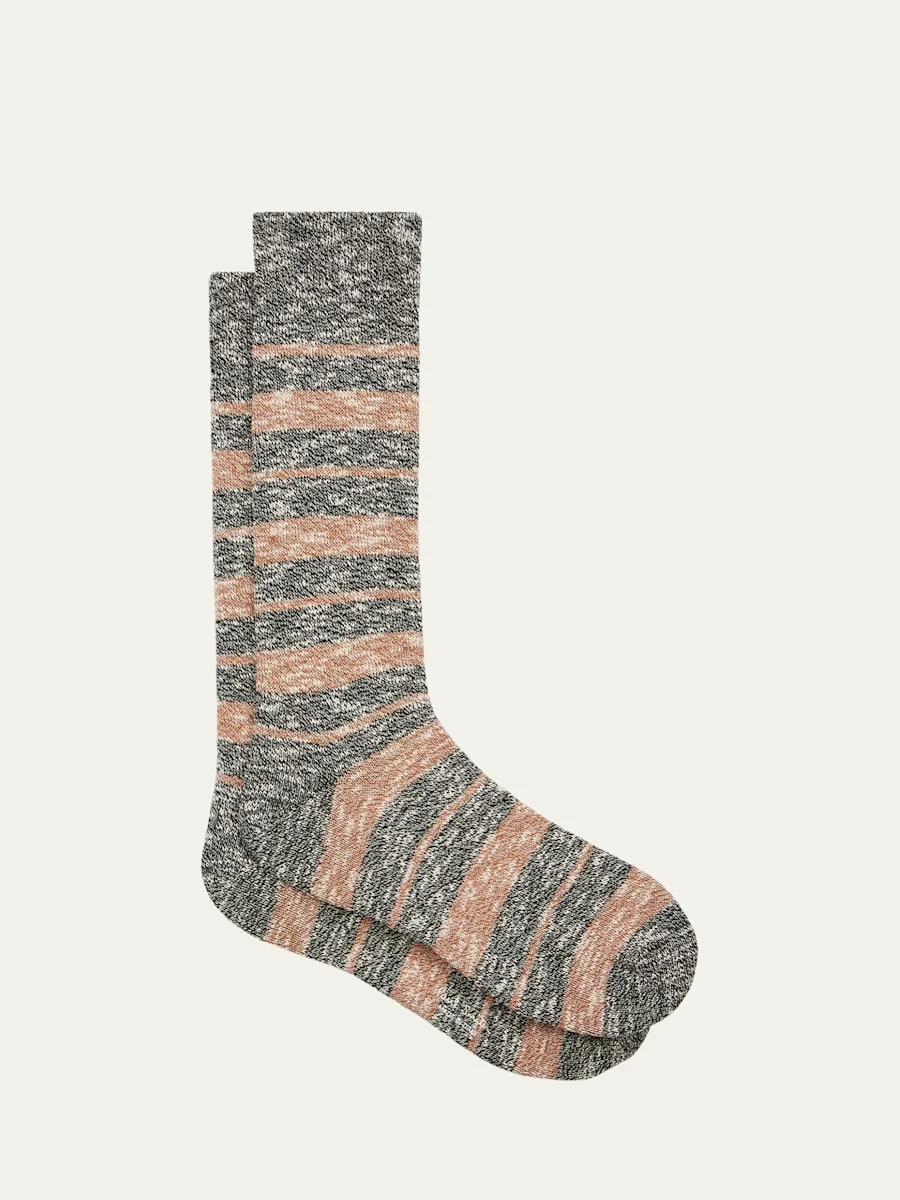 Paul Smith melange crew socks defined by a "Kenny" multistripe pattern Ribbed cuffs to prevent slipping Reinforced toe and heel Cotton/nylon/elastane Made in Italy