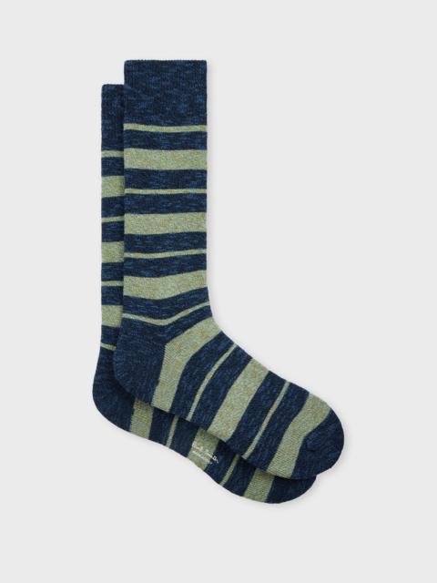 Made in Italy from a soft cotton-blend, these socks feature a stripe pattern throughout, with a flecked stitching effect. Ideal for adding a touch of subtle colour to your outfit. Product Code: M1A-800MO-T589-79