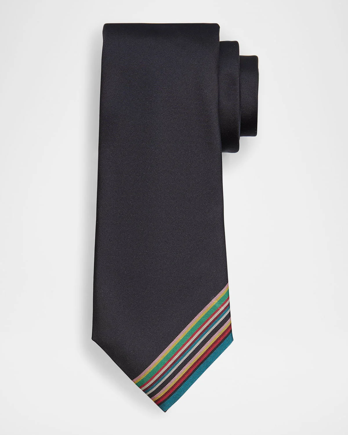 - Paul Smith solid tie in luxe silk showcasing a signature stripe placement on the edge - Silk - Hand wash - Made in Italy