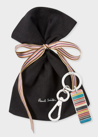 Presenting Paul Smith gift sets, specially curated gift sets presented in a Paul Smith box and gift wrap, making it easier to treat you or a loved one during the holiday season. This gift set includes: [b]Narrow 'Signature Stripe' Socks[/b] Men's narrow 'Signature Stripe' socks. Made in Italy from a soft cotton-blend, these socks are finished with a black heel and toe. One size Knitted, 81% Cotton, 17% Nylon, 2% Spandex Machine washable, wash inside out Made in Italy [b]Multi-Coloured Stripe Tag Metal Keyring[/b] Customise your bag or keys with this silver multi coloured stripe tag keyring. A perfect gift for a loved one, this keyring is finished with our embossed signature logo. 70% Copper, 30% Zinc With Enamel Plated Product Code: M1A-ECOMM-JGIFT42-00