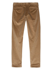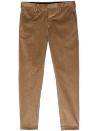 mid-rise tapered trousers Highlights - Beige - Cotton blend - Corduroy - Pressed crease - Mid-rise - Belt loops - Concealed front fastening - Two side slit pockets - Two rear welt pockets - Tapered leg - Turn-up hem Imported Composition Cotton 88%, Virgin Wool 10%, Elastane 2%