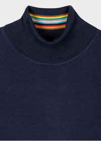 Crafted from a luxuriously soft Merino wool, this navy blue sweater features a roll neck with a 'Signature Stripe' detail throughout the internal neckline. A timeless style that will see you through many seasons, this sweater is expertly finished with our signature logo embroidered on the sleeve. Complete with a ribbed collar, cuffs and waistband. 100% Merino Wool Hand wash or dry clean only Product Code: M1R-565X-L02093-49