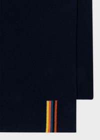 Made from Merino wool, this dark navy scarf features our classic 'Artist Stripe' trim - adding a playful twist to this timeless style. This scarf is the perfect finishing touch to any outfit. Size: 180 x 30 cm 100% Merino Wool Dry clean only Product Code: M1A-151AL-M394-47