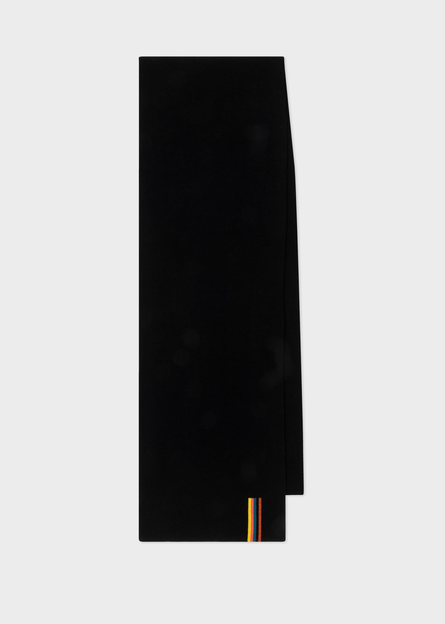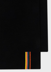 Made from Merino wool, this black scarf features our classic 'Artist Stripe' trim - adding a playful twist to this timeless style. This scarf is the perfect finishing touch to any outfit. Size: 180 x 30 cm 100% Merino Wool Dry clean only Product Code: M1A-151AL-M394-79-0