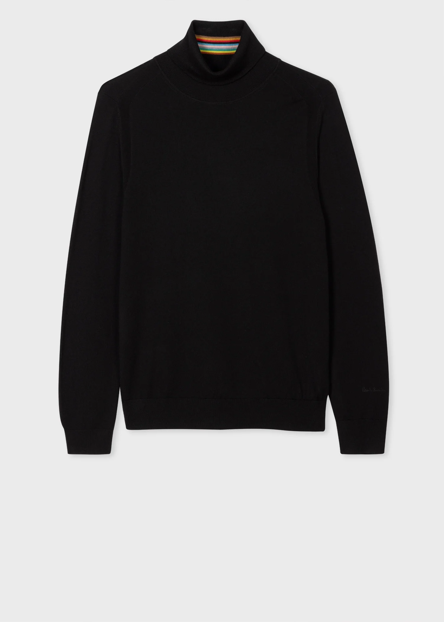 Crafted from a luxuriously soft Merino wool, this black sweater features a roll neck with a 'Signature Stripe' detail throughout the internal neckline. A timeless style that will see you through many seasons, this sweater is expertly finished with our signature logo embroidered on the sleeve. Complete with a ribbed collar, cuffs and waistband. 100% Merino Wool Hand wash or dry clean only Product Code: M1R-565X-L02093-79