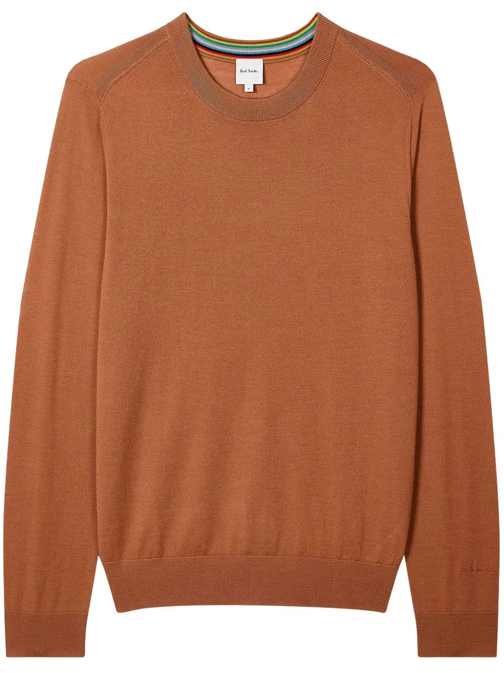 merino wool sweater Highlights - Terracotta brown - Rainbow stripe detailing - Crew neck - Long sleeves - Ribbed cuffs and hem Imported Composition RWS Merino Wool 100%