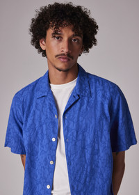 Mid Blue Cotton Textured-Jacquard Short-Sleeve Shirt