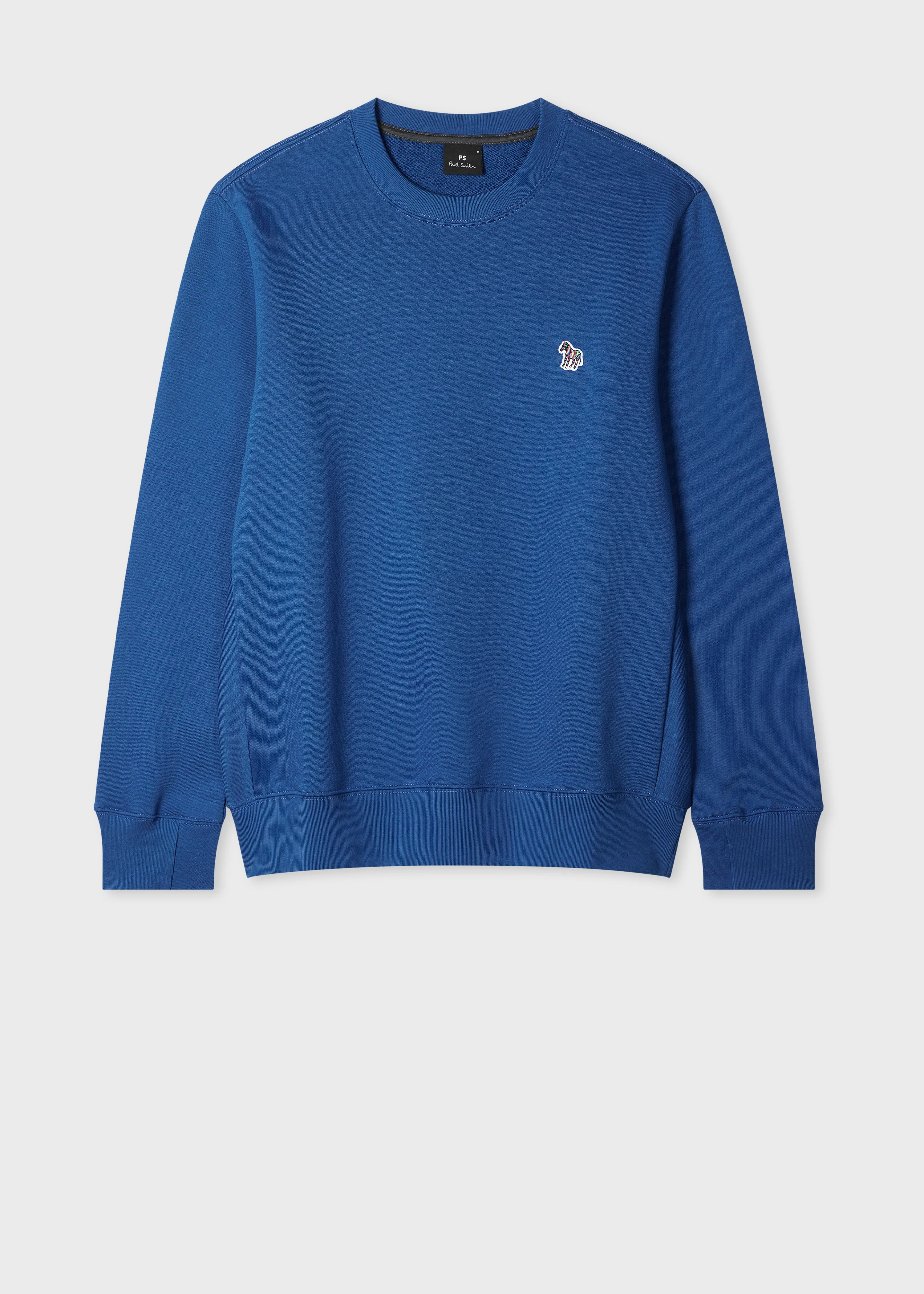 Made from loopback organic cotton jersey, this mid blue sweatshirt features the classic 'Zebra' motif badge on the chest. Cut to a regular fit, the sweatshirt is complete with a ribbed collar, cuffs, and waistband. The Fit - Regular-Fit Product Code: M2R-027RZ-V21116-45D