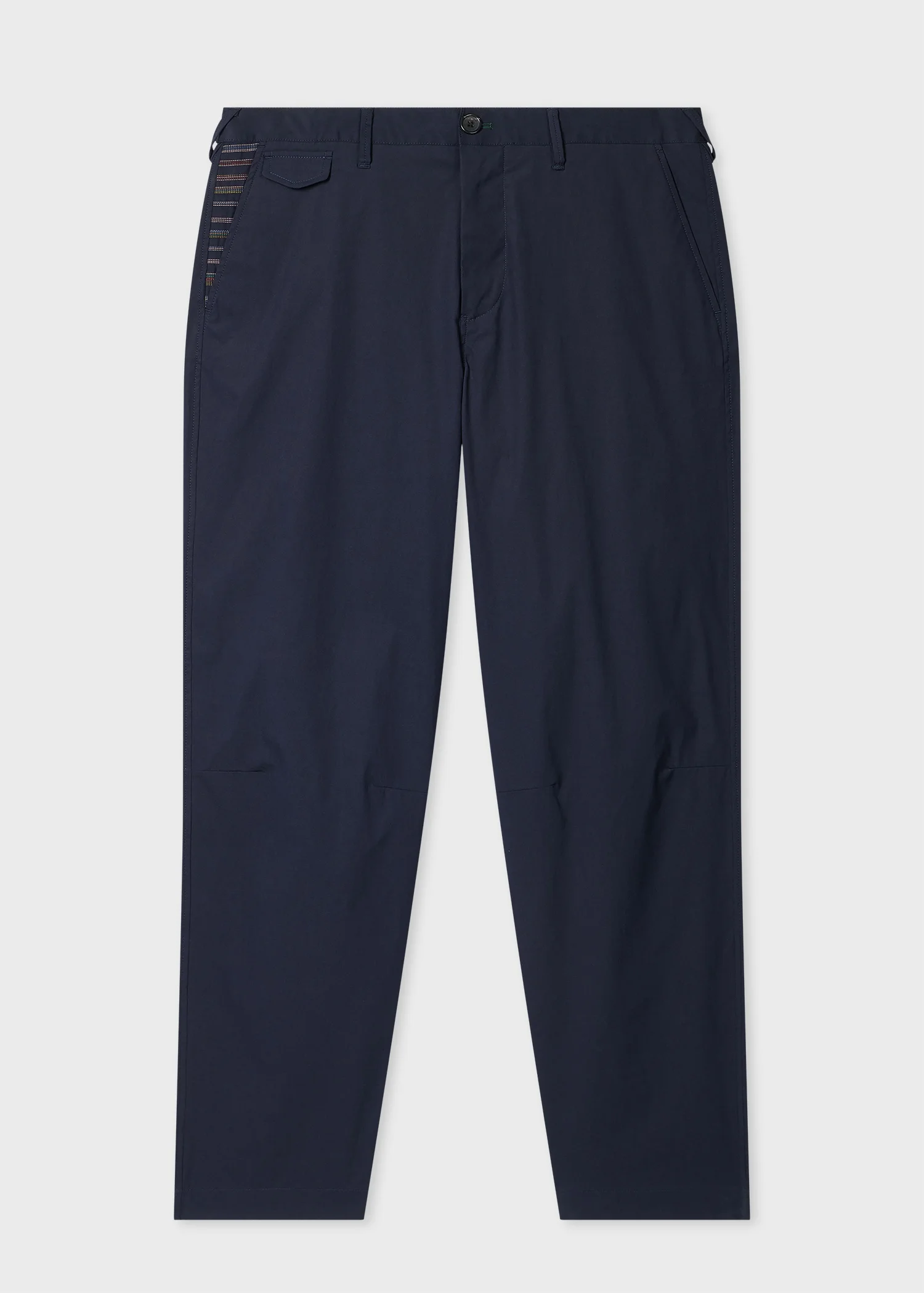 Mid-Fit Navy Cotton-Blend 'Embroidered Stripe' Chinos