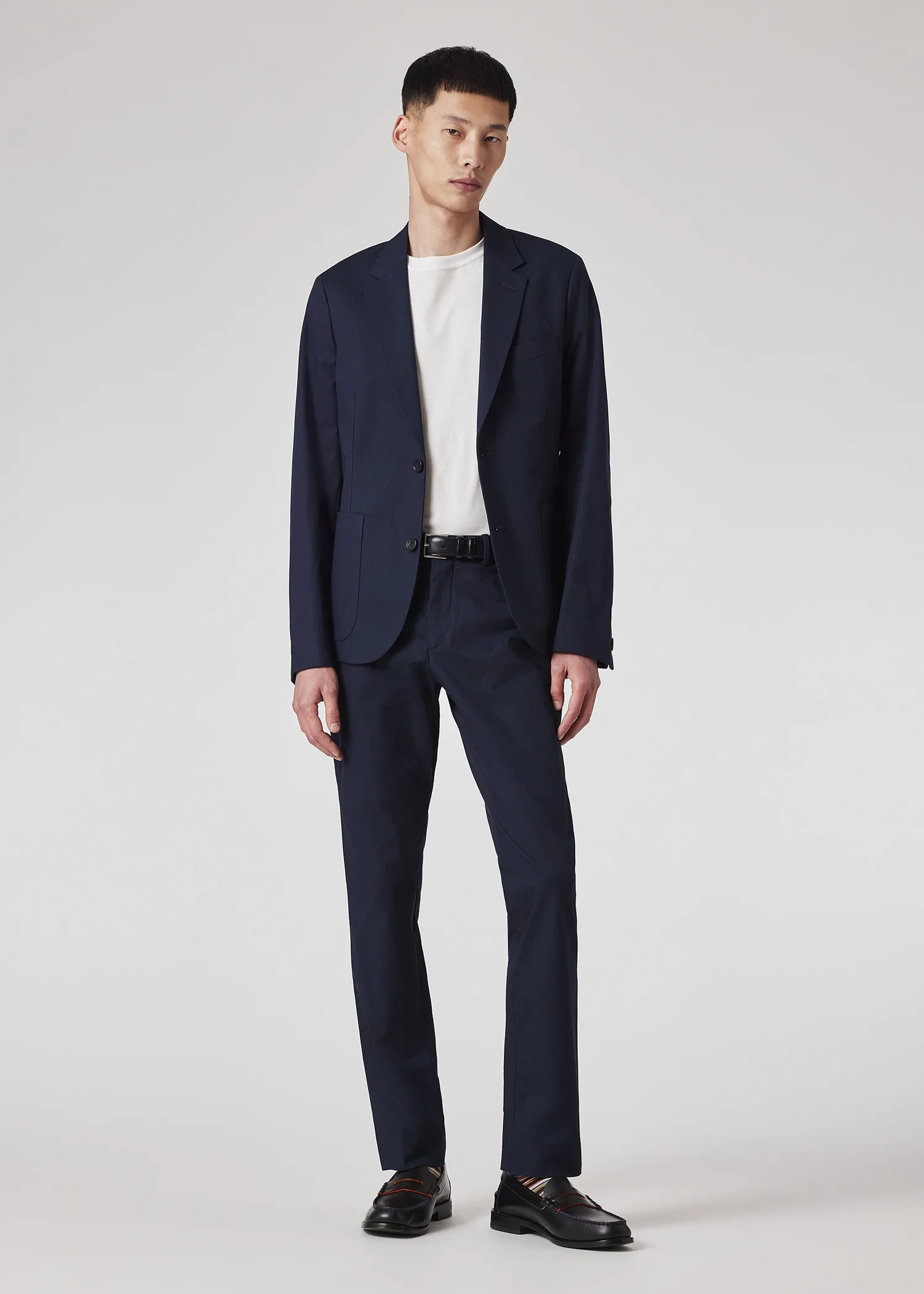 Made from an organically grown cotton cloth with stretch for comfort, this two-piece suit is cut for a mid-fit throughout - giving a relaxed, tailored look. The blazer is unlined for versatility and breathability during the warmer months and features contrast internal binding - for an added signature flash of colour. Completing the suit, the trousers feature a classic chino design and are finished with a mismatched rear pocket design. 97% Organically Grown Cotton, 3% Elastane Dry clean only [i]Model wears a size 38 blazer & 30 trouser Model measures: Height 6.2 ” / 187.5cm | Waist 28”/ 71.5cm | Chest 35 “/ 88.5cm[/i] The Fit Model wears a size 38 blazer & 30 trouser Model measures: Height 6.2 ” / 187.5cm | Waist 28”/ 71.5cm | Chest 35 “/ 88.5cm Product Code: M2R-SUIT-N21961-49
