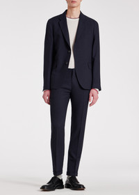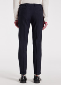 Made in Portugal, these navy trousers are made from 100% wool dyed with a tone-on-tone technique. Cut for a slim-fit, these trousers are finished with turn ups at the hem. The perfect piece to pair with tailoring, these versatile trousers are a wardrobe essential. 100% Wool Made in Portugal Dry clean only The Fit Slim-Fit is cut for a close fit through the leg. Product Code: M1R-150M-J01746-49