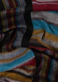 Made from a super soft, wool-cashmere blend, this scarf features a 'Signature Stripe' pattern throughout, in a 'mix up' arrangement. Complete with frayed edges, this scarf is perfect for the transitioning weather. 95% Lambswool, 5% Cashmere Dry Clean Only 185cm x 40cm Product Code: M1A-150K-L572-92-0