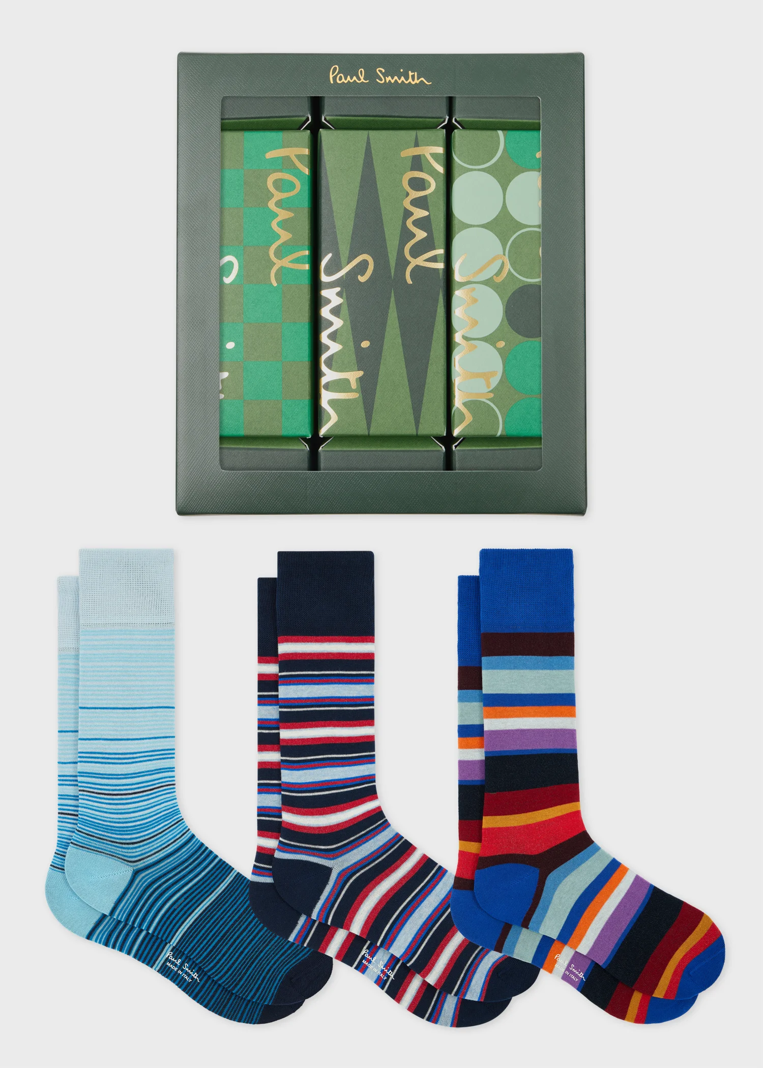 This bespoke festive cracker set, designed exclusively for the 2025 holiday season includes three pairs of classic striped socks. Featuring three vibrant stripe options, each presented in a different pattern cracker - this set is the ideal gift for the festive season. Product Code: M1A-SOCK-U3PNAV-1A