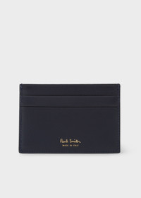 Made in Italy from a smooth calf leather, this credit card holder contains three credit card slots and a central compartment for folded notes or receipts. Complimentary Monogramming Service Available. Black fabric lining Gold foil Paul Smith signature on the exterior Presented in a black gift-box Size: 10.1 x 6.7cm 100% Calf Leather Made in Italy Please note: if ordering without monogramming, your wallet will be blank. Product Code: M1A-4768-RW937-47
