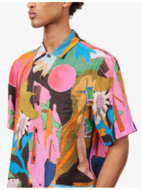 PRODUCT DETAILS - Paul Smith woven shirt - 85% viscose, 15% polyamide - Button fastening - Relaxed boxy fit, classic collar, short sleeves, patch pocket at chest, all-over graphic print - Machine wash at 30°C - Made in Italy - Size medium: chest 46in / 117cm, length 28in / 71cm - Model is 6ft 2in/1.88m and wears a size medium - Lightweight, non-stretch Ref: R04574054