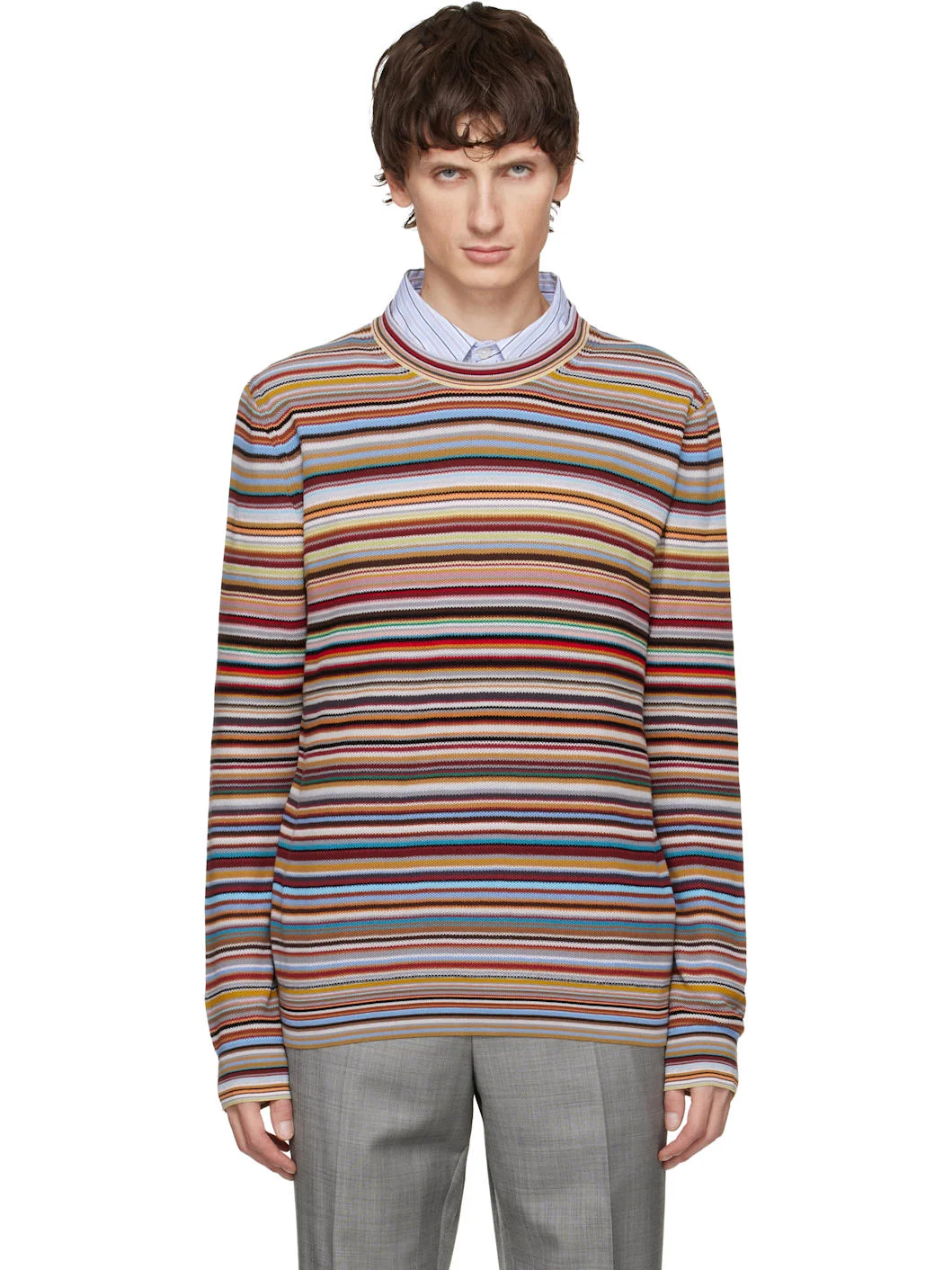 Knit cotton sweater. · Jacquard signature stripes throughout · Rib-knit crewneck, hem, and cuffs Supplier color: Multicolour 100% cotton. Made in Italy 252260M201000