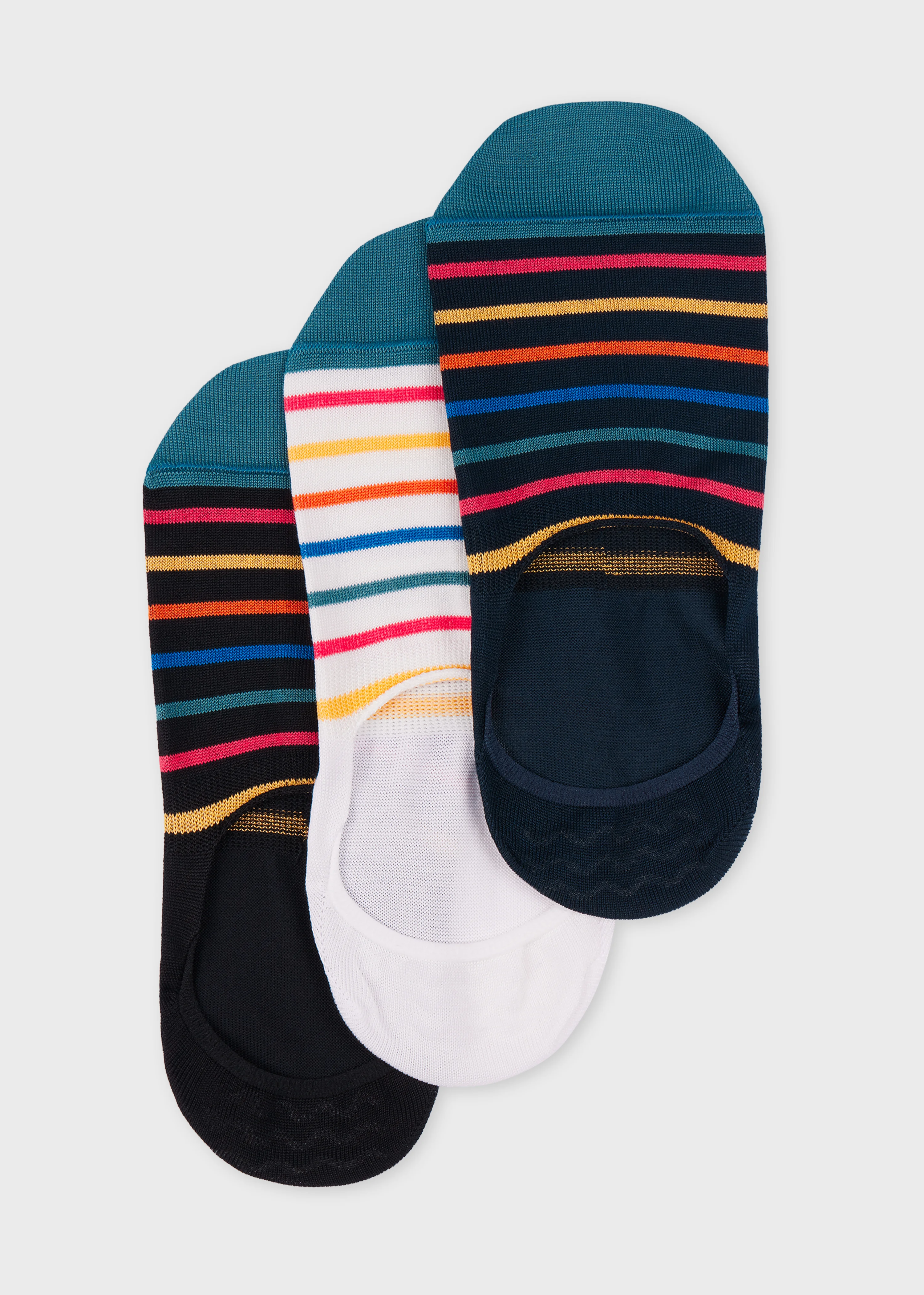 Made in Italy from a soft cotton-blend, this three pack of loafer socks features a multicolour stripe pattern throughout. Finished with rubber heel grips internally to keep the socks in place. Machine Washable Product Code: M1A-SOCK-P041-1A