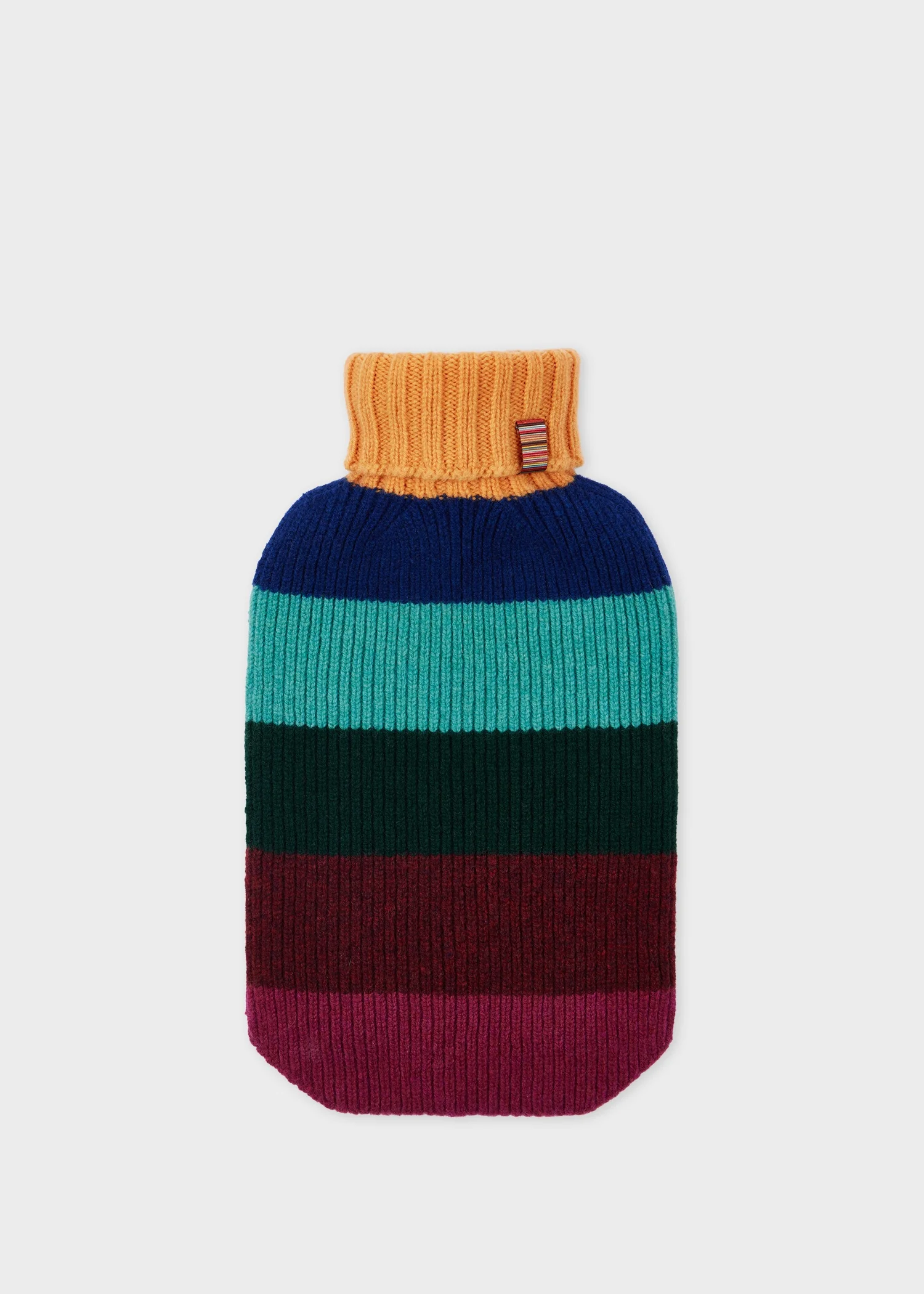Made in Scotland from 100% lambswool, this hot water bottle features a classic multistripe pattern. Complete with a ribbed top and 'Signature Stripe' tab trim. 100% Lambswool Approx size: L: 36 x W: 21cm Dry clean only Made in Scotland Product Code: M1A-156MK-P819-92