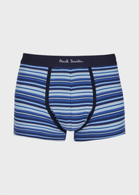 Made from soft organic cotton-blend, this pack of five navy and black boxer briefs feature a mix of stripe and plain patterns. Designed for comfort and support, these trunks combine classic Paul Smith styling with everyday practicality. Product Code: M1A-914-T5PK13-1A