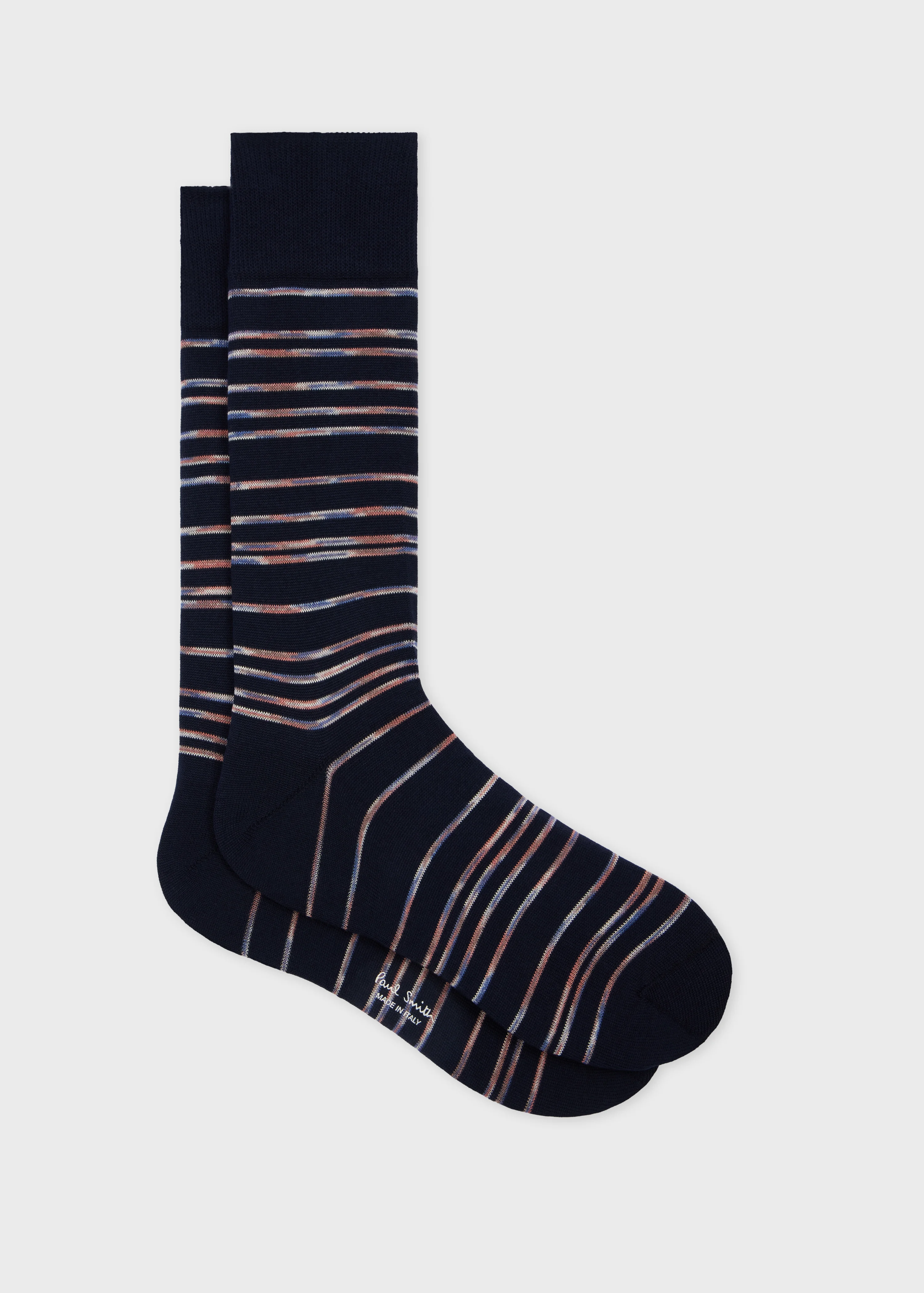 Made from a soft cotton-blend, these navy blue socks feature a 'Pinstripe Signature' pattern throughout. With subtle colouring, these socks are ideal for everyday styling. Product Code: M1A-800MO-T582-47