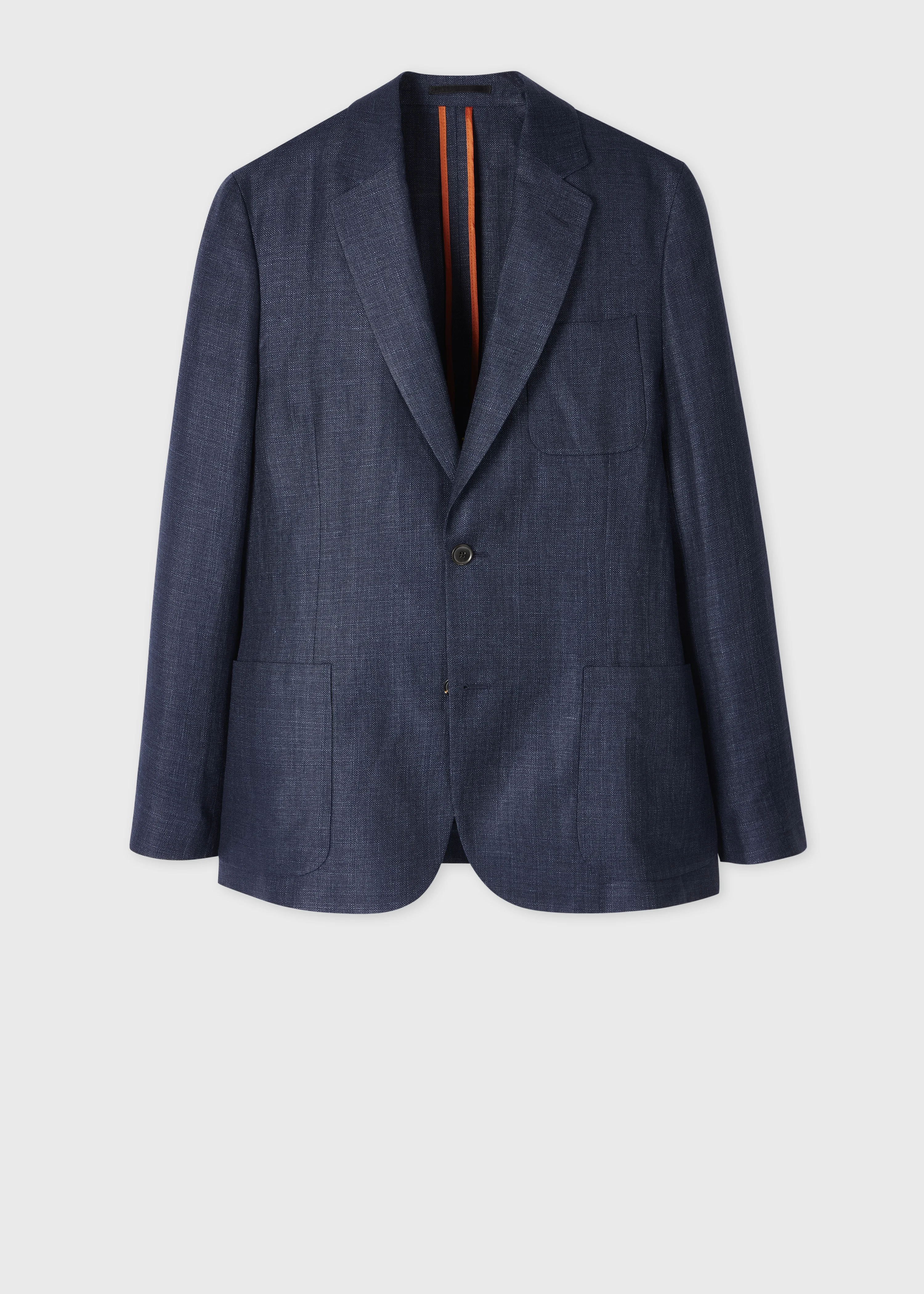 Made in Portugal from a super 110s wool and linen-blend cloth, this navy blue blazer features an unlined design with bluff-stitched patch pockets for added practicality. An ideal option for the warmer weather, this blazer is finished with a two-button closure. The Fit - Classic-Fit also known as Casual-Fit is unstructured with a relaxed shoulder and slightly longer in the body. Product Code: M1R-2321-T02225-47
