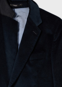 Crafted in Portugal from 12 wale cotton and wool-blend corduroy for a textured finish, this navy blazer features a classic design with flap pockets and notched lapel. Pair with the matching trousers for a more relaxed tailoring option. The Fit - Tailored-Fit - Modern classic shoulder - Higher break, notch lapel Product Code: M1R-2311-T02065-47